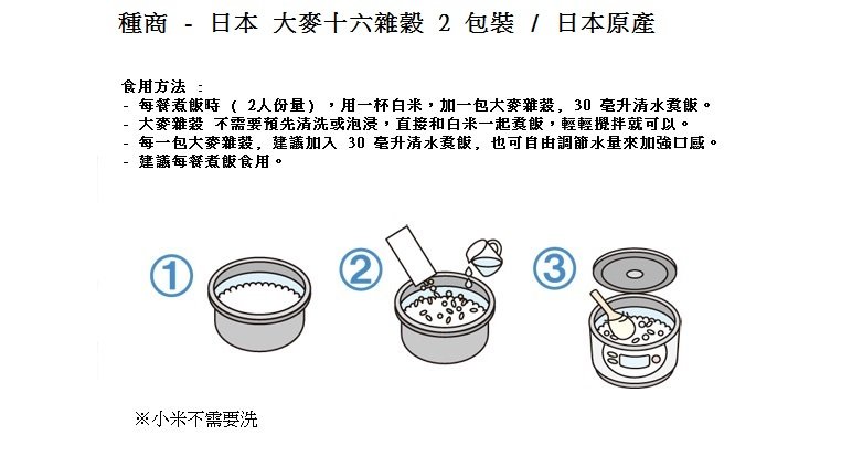 - 通過簡單地用白米烹煮,便能在日常餐中可以攝入多種營養。